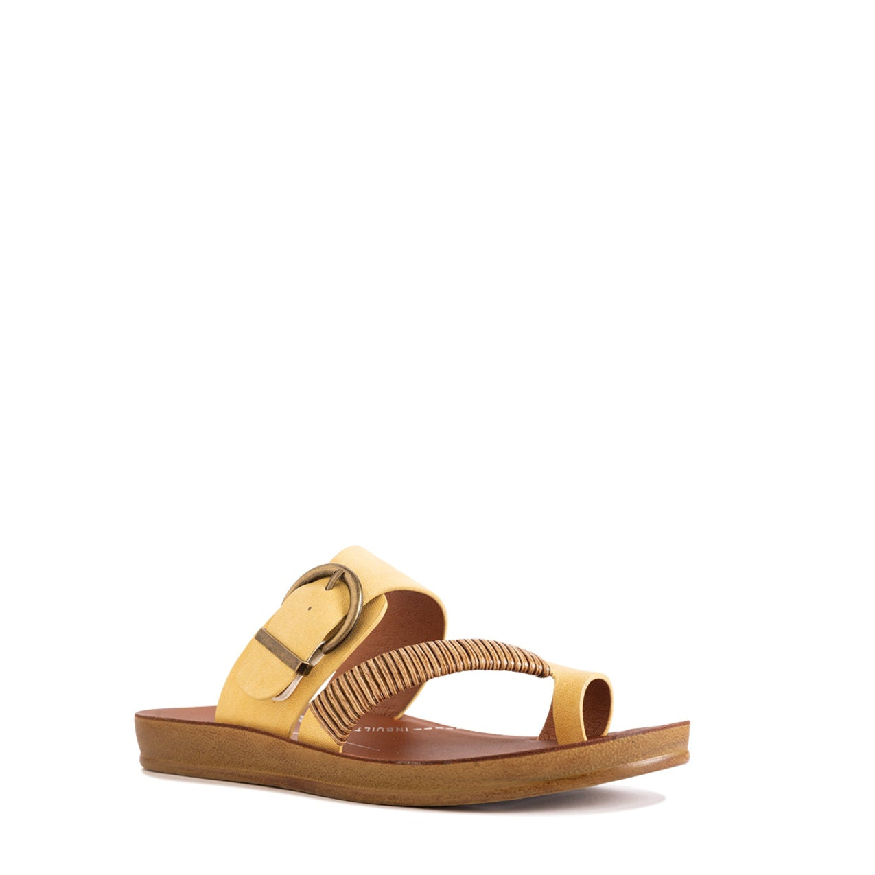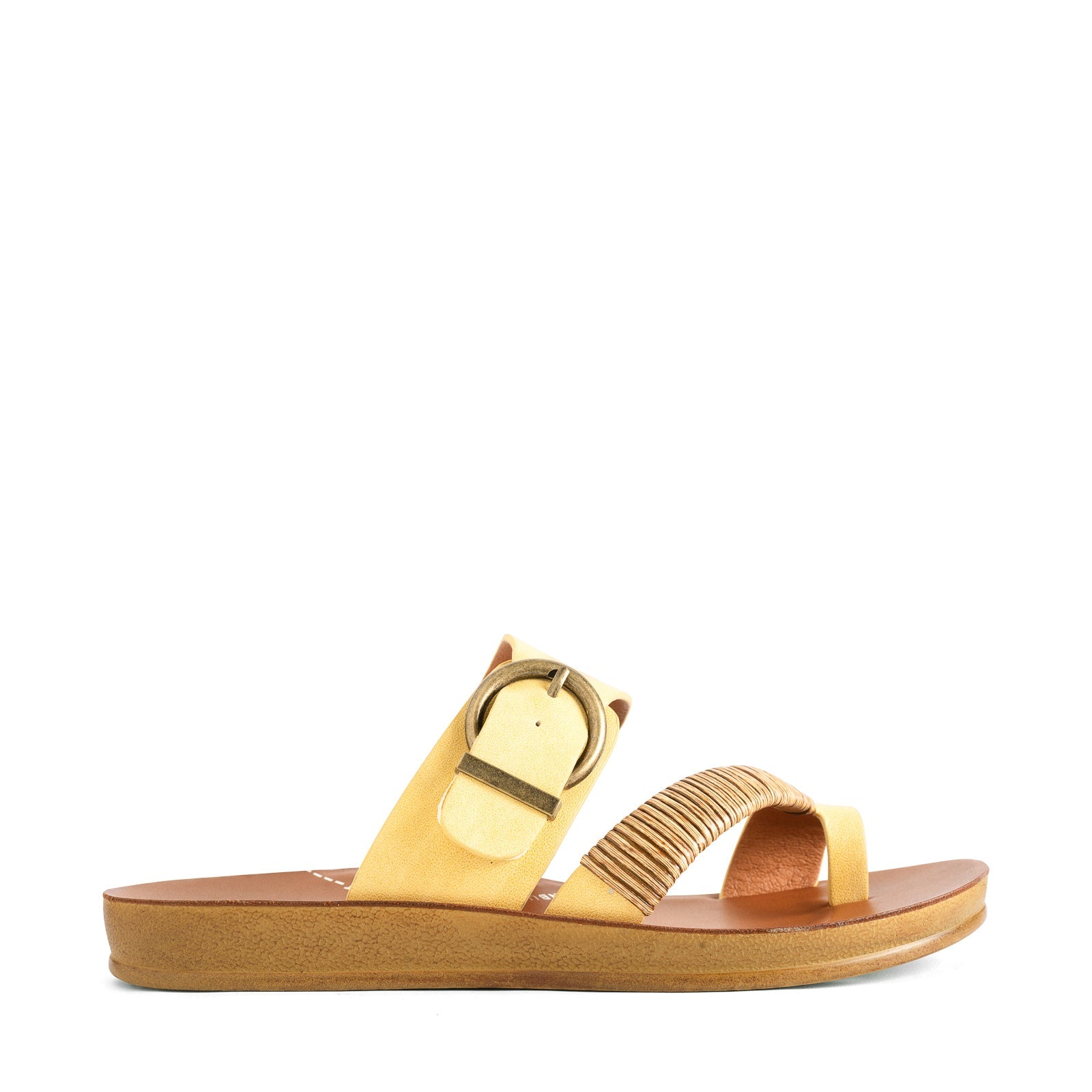 Los Cabos captures the spirit of fun in the sun with their Bria sandal. The ease of a slip-on is given a touch of natural beauty with our woven bamboo wrap gracing the toe strap, whilst the antique round buckle on the back strap adds a treasure box accent. Ideal for resort escapes, beach walks or just a shoe to slip on when you need to rush out the house.
