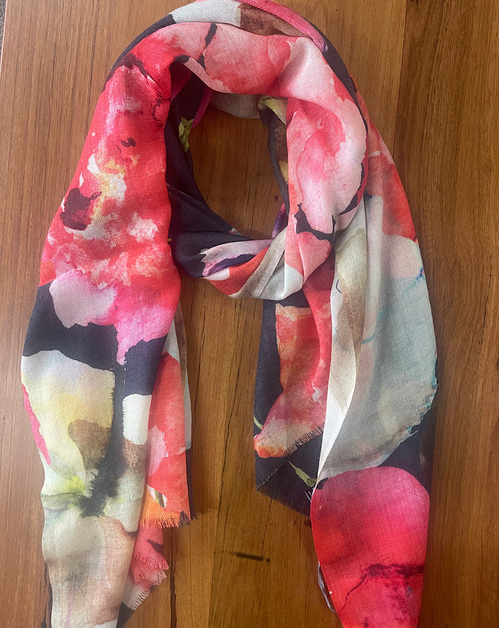 This Raffal scarf is woven from yarns selected and spun from specified fibres of between 18.5 and 21 micron wools. Such fine micron wools give superior softness and handle to the fabrics which are luxuriously smooth and light.